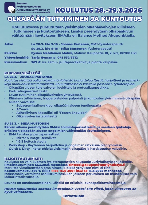 - Syksy 2023: Balance Method Acupuncture (BMA), Ft Mika Mustonen